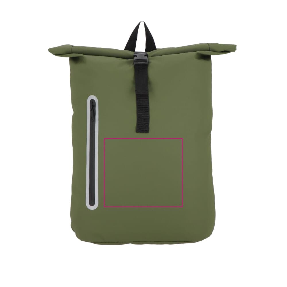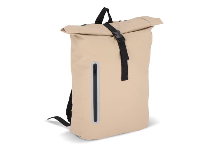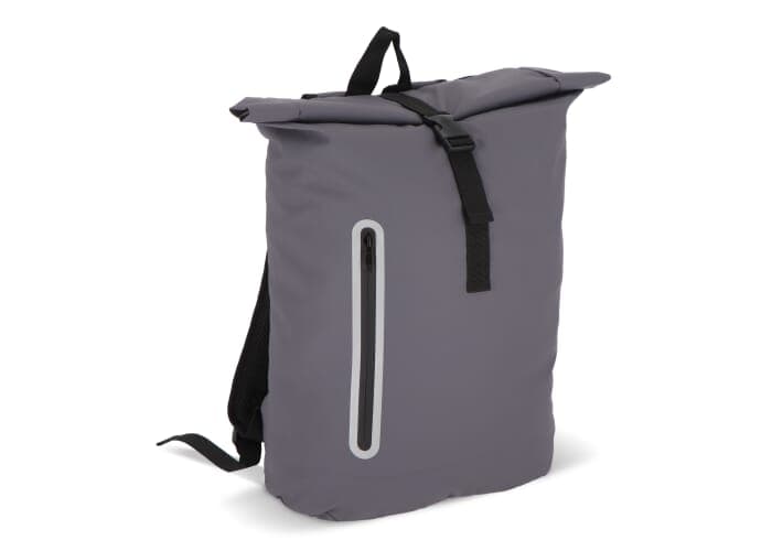 Deze rugzak met roltop is gemaakt van gerecycled PET met PU-coating in 600D-materiaal. Voorzien van reflecterende strips op de schouderbanden en rond het voorvak voor extra veiligheid in het donker. Met handvat, verstelbare gewatteerde schouderbanden en een gewatteerd laptopvak.