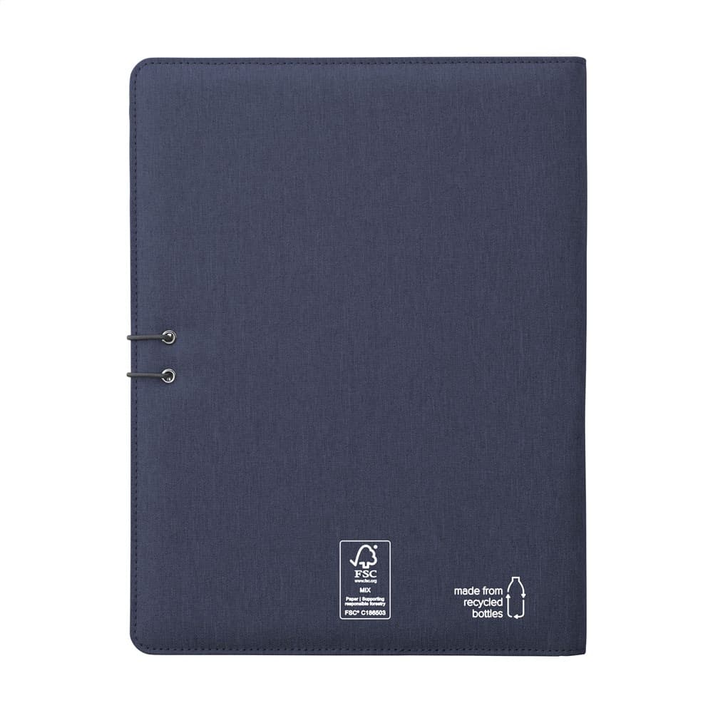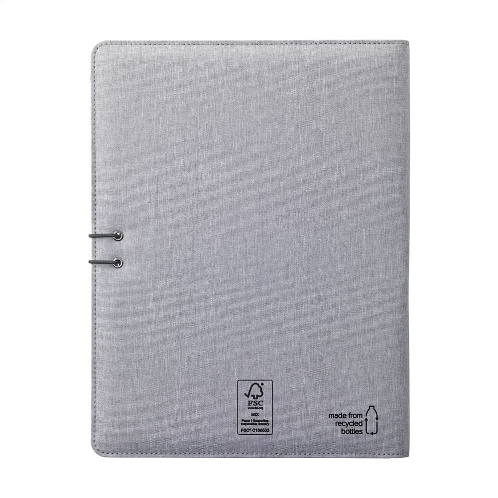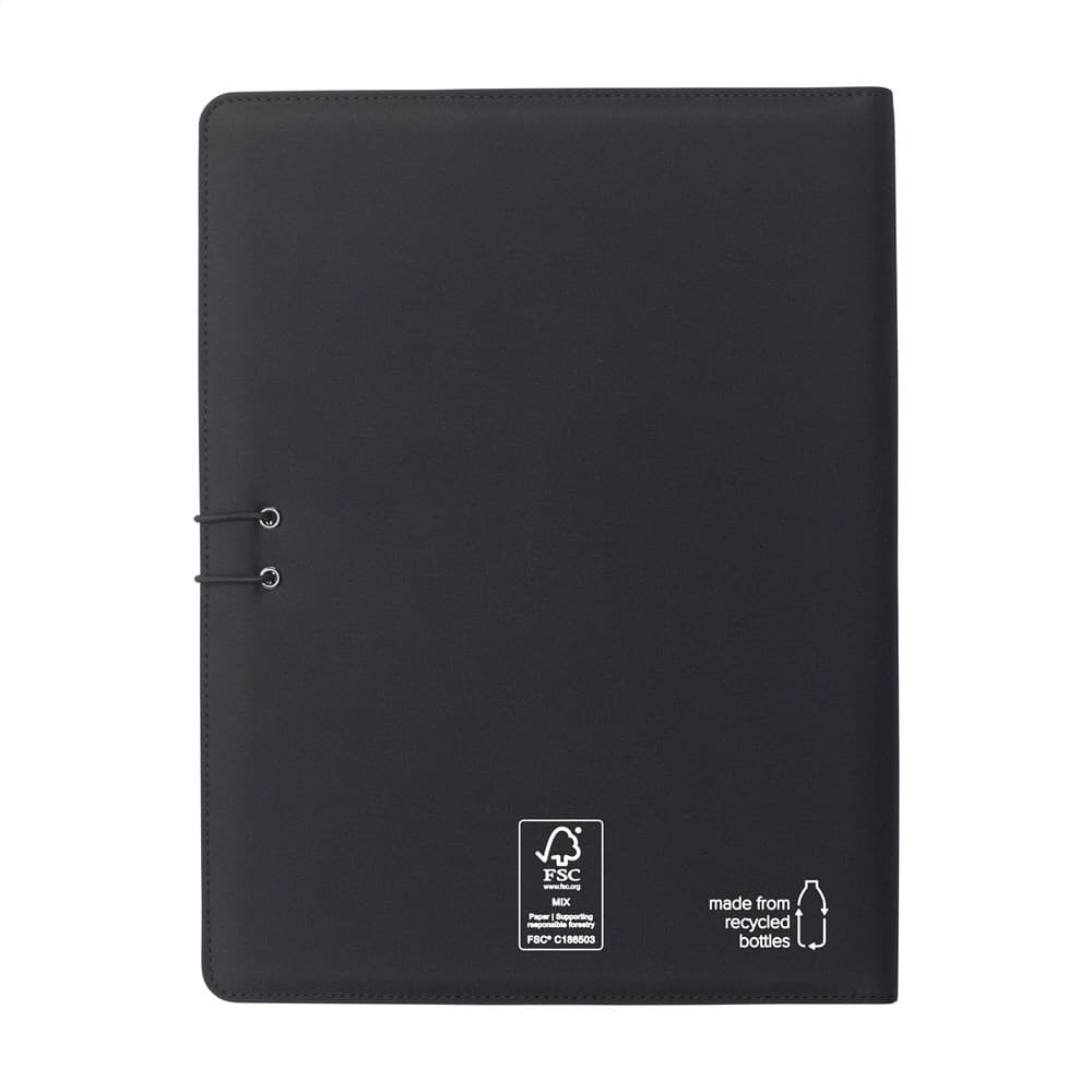WoW! Moderne schrijfmap/documentenmap gemaakt van RPET-materiaal (gerecyclede PET-flessen). In A4-formaat. Voorzien van diverse insteekvakken, waaronder een apart vak voor het opbergen van een mobiele telefoon, en een pennenlus. Incl. schrijfblok met 20 vel gelinieerd papier (70 g/m²). Een duurzaam en milieuvriendelijk product.