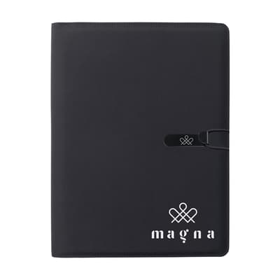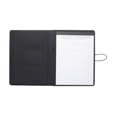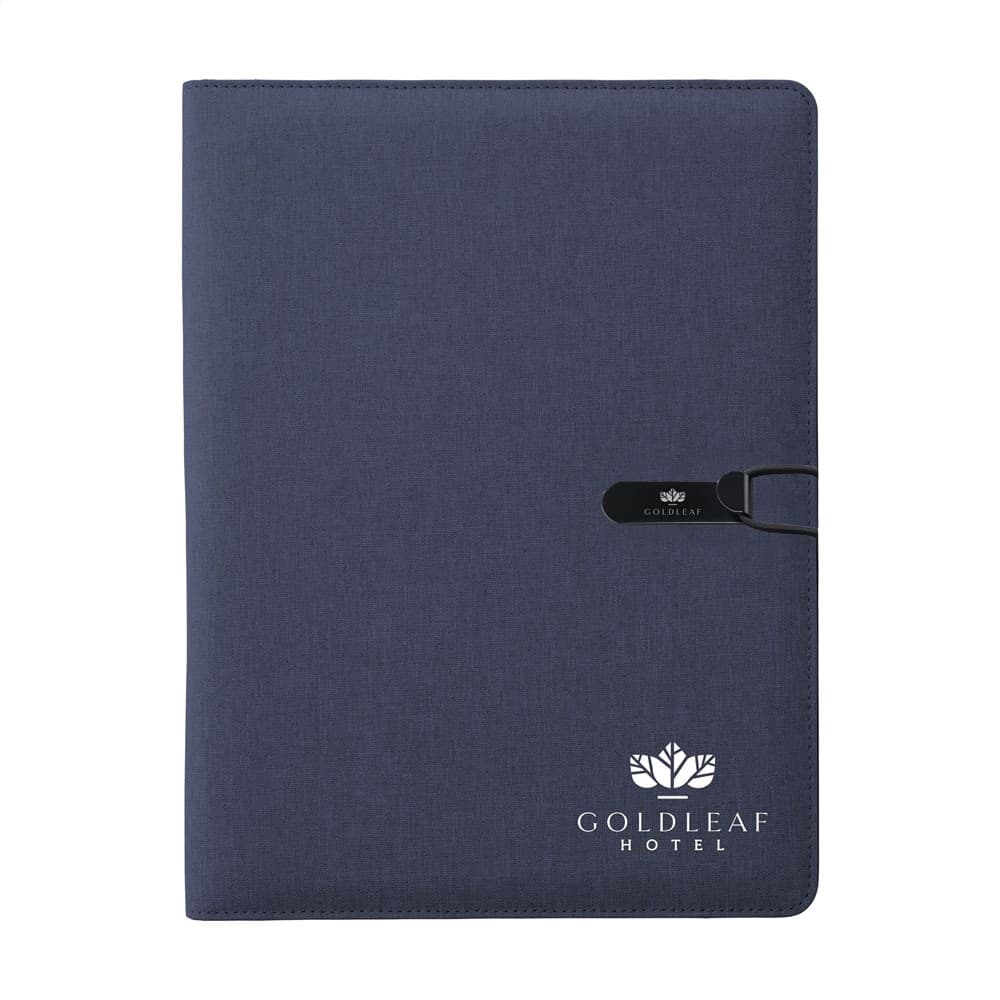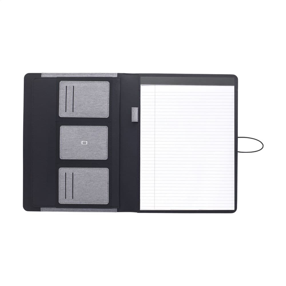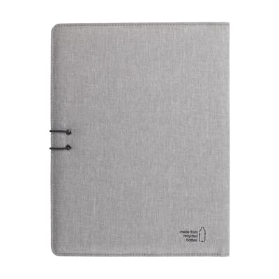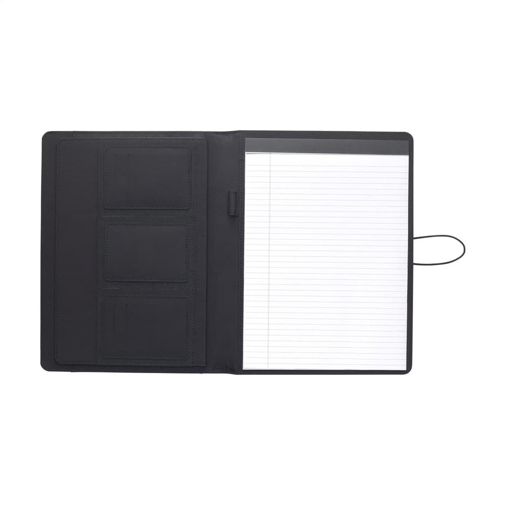 WoW! Moderne schrijfmap/documentenmap gemaakt van RPET-materiaal (gerecyclede PET-flessen). In A4-formaat. Voorzien van diverse insteekvakken, waaronder een apart vak voor het opbergen van een mobiele telefoon, en een pennenlus. Incl. schrijfblok met 20 vel gelinieerd papier (70 g/m²). Een duurzaam en milieuvriendelijk product.