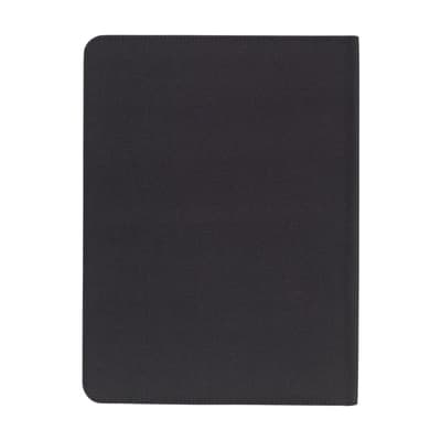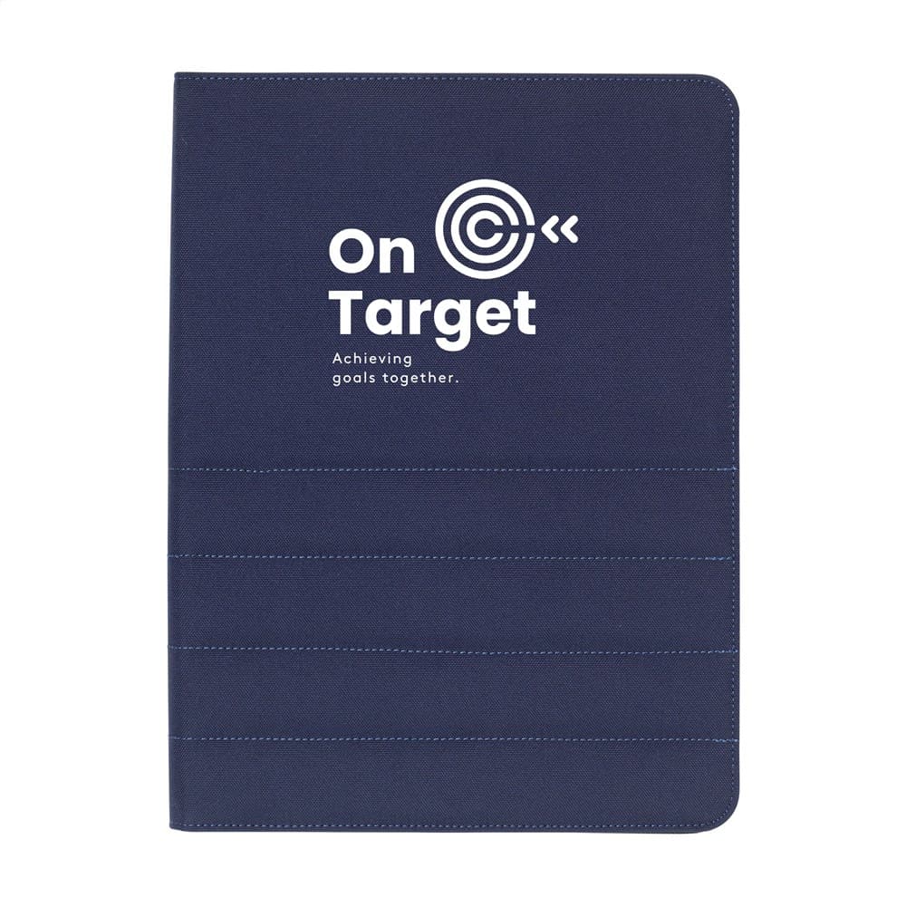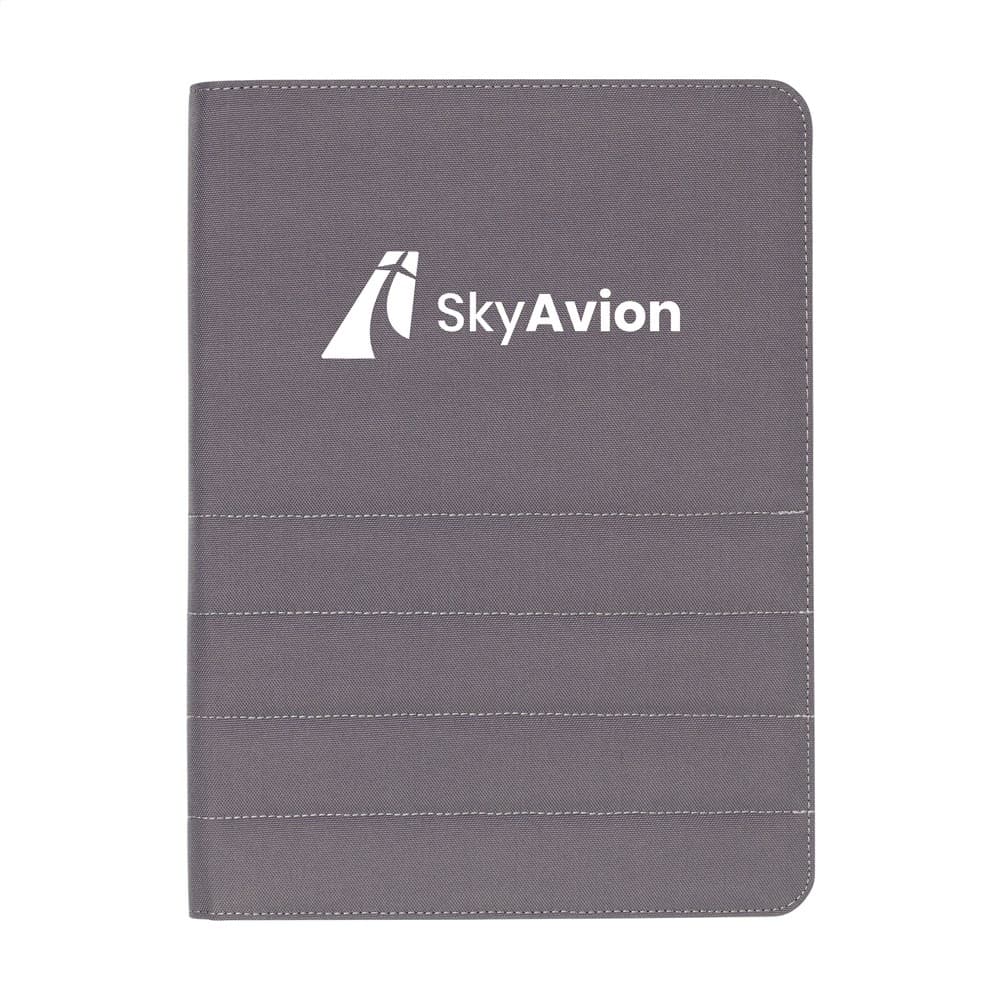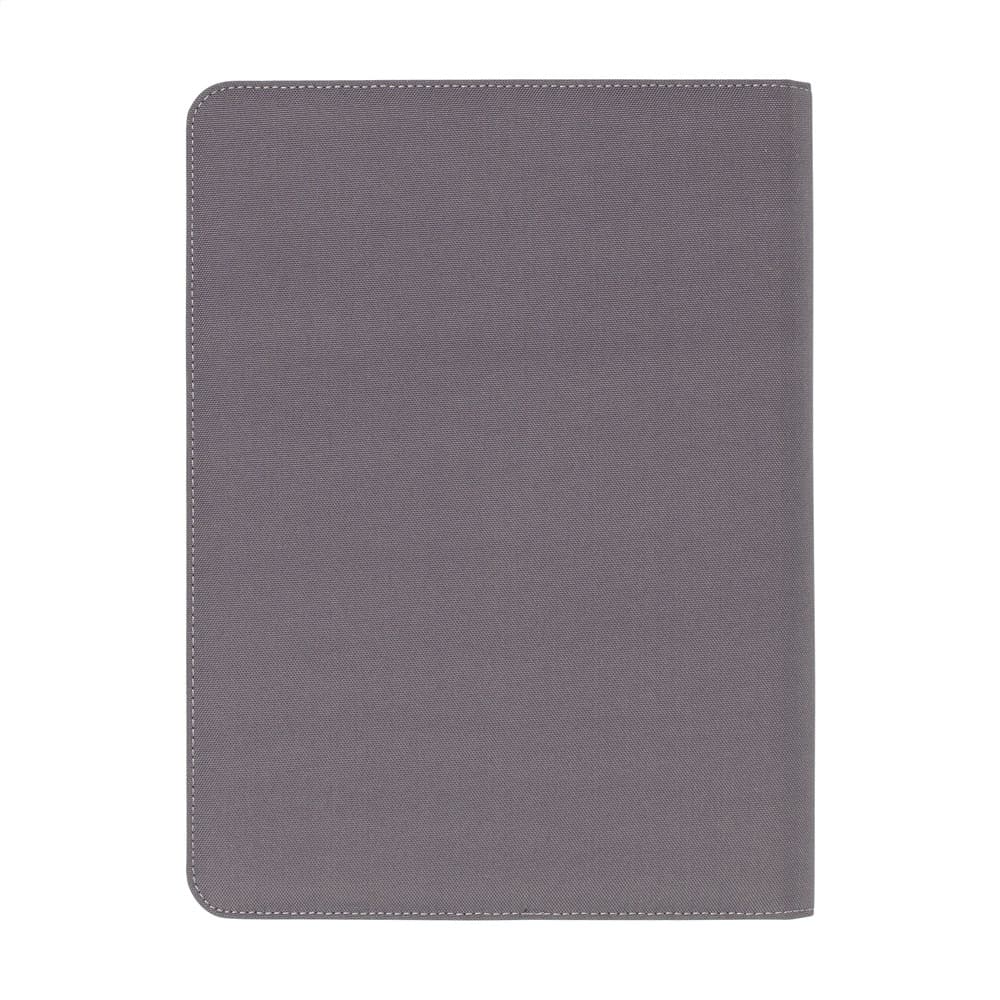 WoW! Moderne A4-schrijfmap/documentenmap gemaakt van RPET. Met stevige, gewatteerde omslag. Aan de binnenzijde voorzien van een pennenlus, diverse insteekvakken, waaronder een apart vak voor het opbergen van een mobiele telefoon en creditcardvakjes. Incl. schrijfblok met 30 vel gelinieerd papier (70 g/m²). Een duurzaam en milieuvriendelijk product.