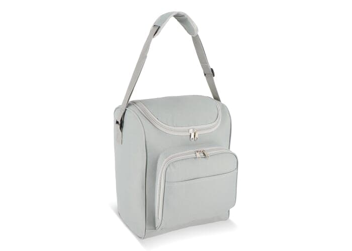 13L Koeltas gemaakt van gerecycled PET 600D met een brede bovenopening. Voorzien van aluminiumfolie voering en een voorvak met ritssluiting. Ideaal voor drinkflessen, picknicks en boodschappen.
