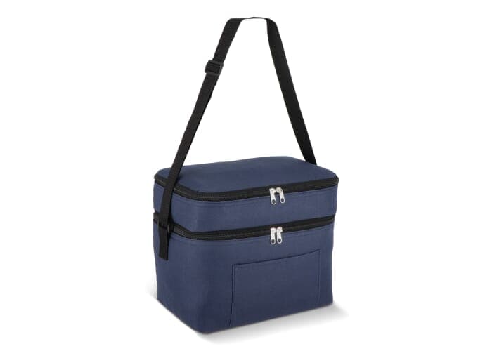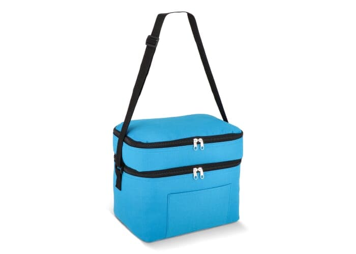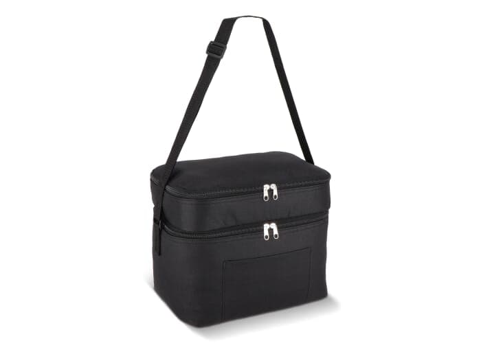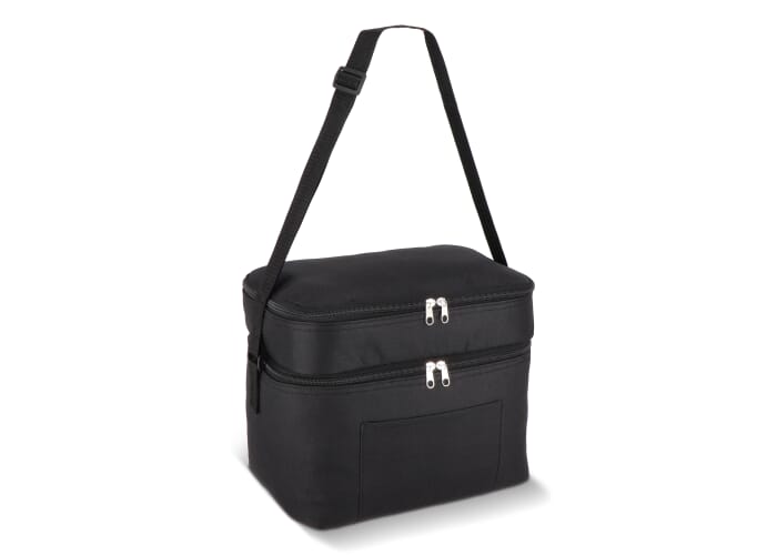 12L Koeltas gemaakt van duurzaam gerecycled PET 600D. Ontwerp met twee compartimenten voor het georganiseerd houden van voedsel. Voorzien van een aluminiumfolie voering en een voorvak. Praktisch en ruim.