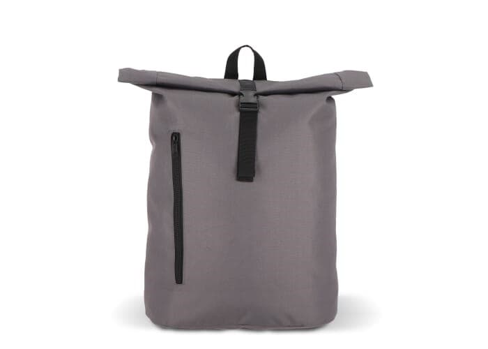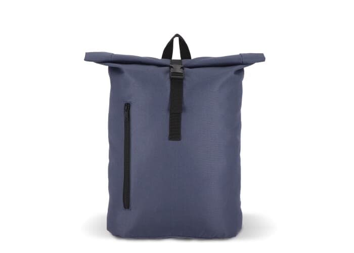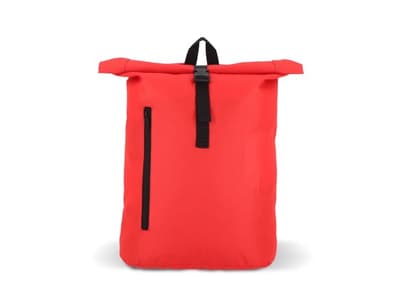 Deze handige rugzak in het trendy roll-top ontwerp is gemaakt van gerecycled PET. Hij heeft verstelbare, gewatteerde schouderbanden, een handvat aan de bovenkant en een voorvak met ritssluiting, ideaal voor kleinere accessoires.