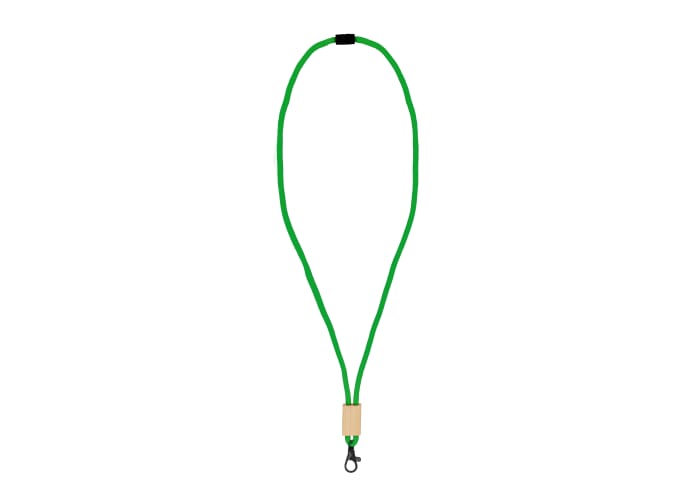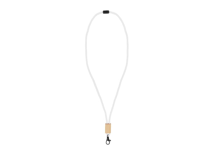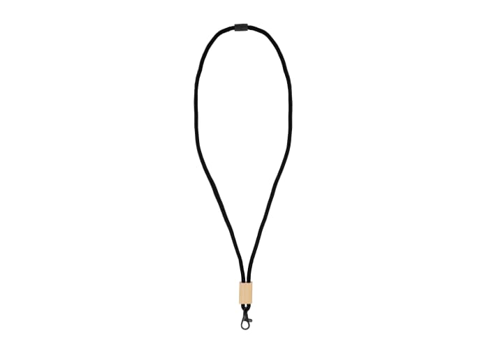 Lanyard gemaakt van R-PET paracord met plastic veiligheidsaansluiting en zwarte accenten. De keycord is verstelbaar met de bamboe slider die voldoende ruimte biedt voor branding.