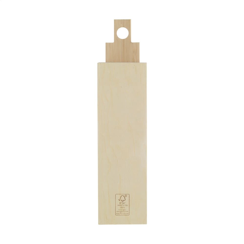 Rackpack Casa de Tapas Small: een wijnkist en een tapasplank in één. Een houten geschenkverpakking voor een fles wijn of heerlijke tapas. De voorkant van het bamboe bord heeft vakjes voor tapas, de achterkant kan gebruikt worden als snijplank. Muchas gracias! Rackpack: een wijngeschenkkist met een nieuw tweede leven! • geschikt voor één fles wijn • 8-10 mm duurzaam dennenhout, FSC®100%-gecertificeerd • bamboe hout: een duurzaam alternatief voor boomhout - bamboe kan binnen 5 jaar worden geoogst (bomen hebben 30 - 120 jaar nodig!) en uit de overgebleven wortel groeien 4 tot 7 nieuwe planten • wijn optioneel. Per stuk in kraft doos.