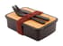 Lunchbox van gerecycled PP plastic met deksel van bamboe, bestekset (mes en vork) en elastische band. 500 ml.