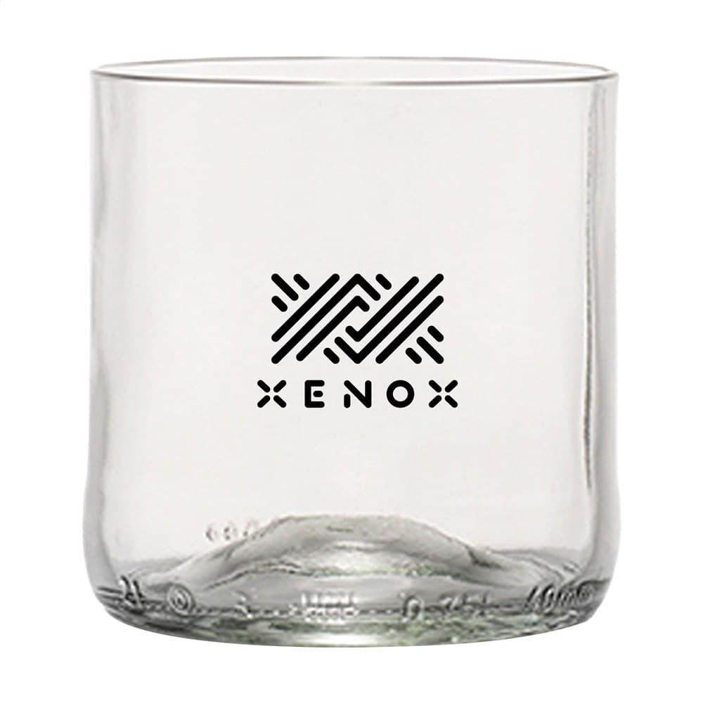 Een design drinkglas gemaakt van een geupcyclede wijnfles. Een uniek glas van het merk Rebottled®, waarin je direct de oorspronkelijke wijnfles herkent. Het glas ligt lekker in de hand en heeft een gladde afwerking. Van hoge kwaliteit en geschikt voor water, frisdrank of wijn. Dutch design. Vaatwasserbestendig tot 60C°. Voor behoud van de opdruk wordt met de hand afwassen aanbevolen. Per stuk geleverd in een originele geschenkverpakking van gerecycled FSC® gecertificeerd karton. Dutch design. Made in Holland. Inhoud ca. 175 ml. Bedrukking alleen mogelijk in de kleur zwart of wit. Rebottled® upcyclet lege wijnflessen tot 100% circulaire design items.
