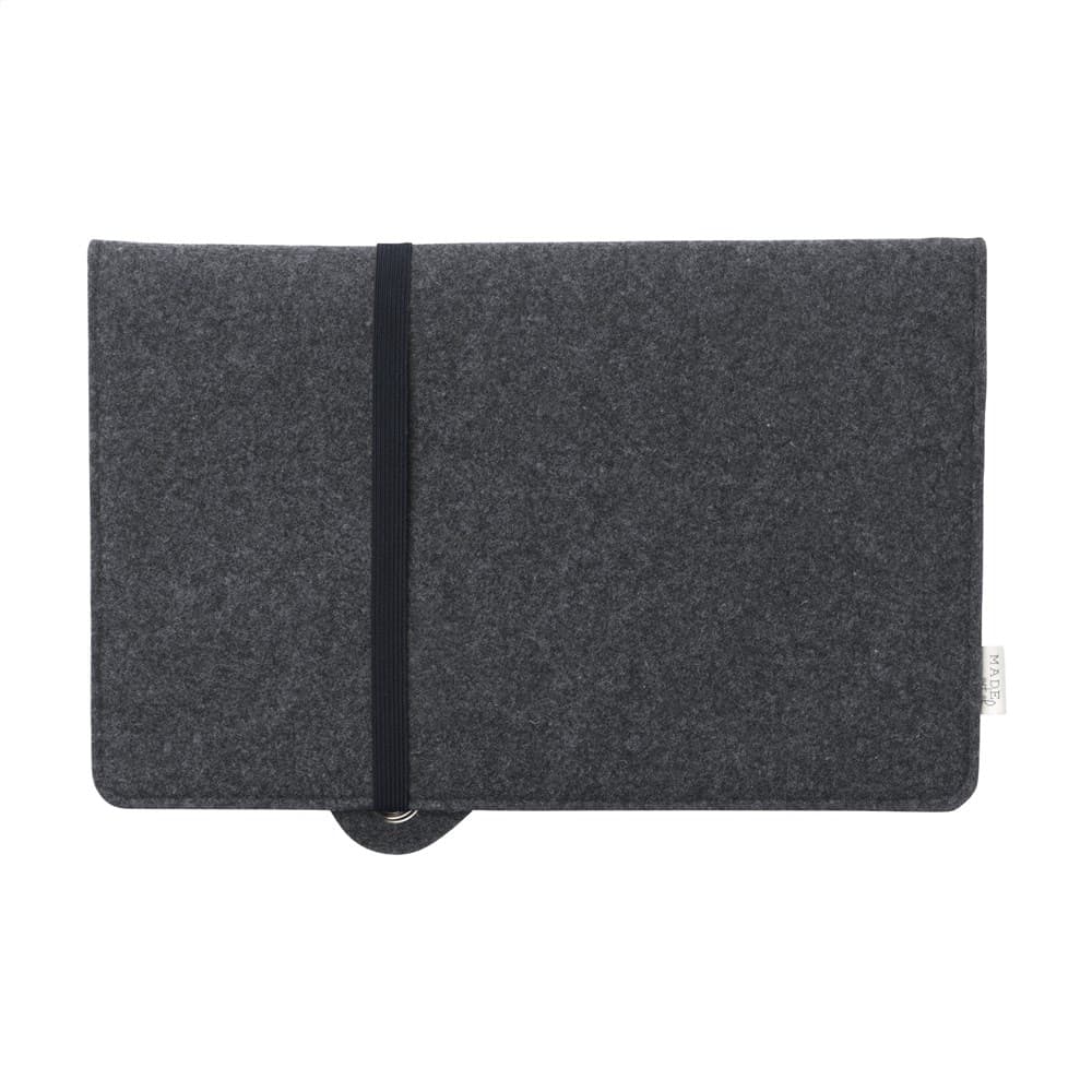 Deze stijlvolle, design 14 inch laptop sleeve is gemaakt van een combinatie van appelleer, een plantaardig alternatief voor leer, en gerecycled wolvilt vervaardigd uit 50% gerecycled wol, 30% polyester en 20% wol. De pulp van appels is de basis voor het maken van appelleer dat er uitziet en voelt als leer. Een duurzaam en stijlvol product van MADE out of voor het veilig opbergen en vervoeren van een laptop. Deze laptophoes heeft een fraaie sluitelastiek van 100% GOTS gecertificeerd katoen en natuurlijk rubber dat biologisch afbreekbaar is. Het extra opbergvak heeft genoeg ruimte voor het opbergen van bijvoorbeeld een oplader en documenten. Voorzien van het Global Recycled Standard keurmerk. Handgemaakt. Dutch design. Made in Holland. Met het vakkundige hergebruik van materialen wordt dit materiaal een nieuw leven ingeblazen en tegelijk worden de principes van de kringloopeconomie nageleefd. Door het ragageproces worden kledingstukken gereduceerd tot gerecyclede vezels, gescheiden naar kleur en soort. Aan het einde van het productieproces ziet de tuft er hetzelfde uit als fris geschoren wol. Het materiaal wordt geproduceerd in Italië. Impact – 1 kilo vilt bespaart: 541 liter water 54,50 KG CO2 92 kWh Dit staat gelijk aan 4,5 keer een bad vullen en 150 keer je laptop opladen. Extra info inzake levertijd: 1 - 50 stuks: 2 weken, 50 - 250 stuks: 3 weken, 250 - 500 stuks: 4 weken, 500 - 1.000 stuks: 5 weken. Vanaf 1.000 stuks prijs en levertijd op aanvraag.