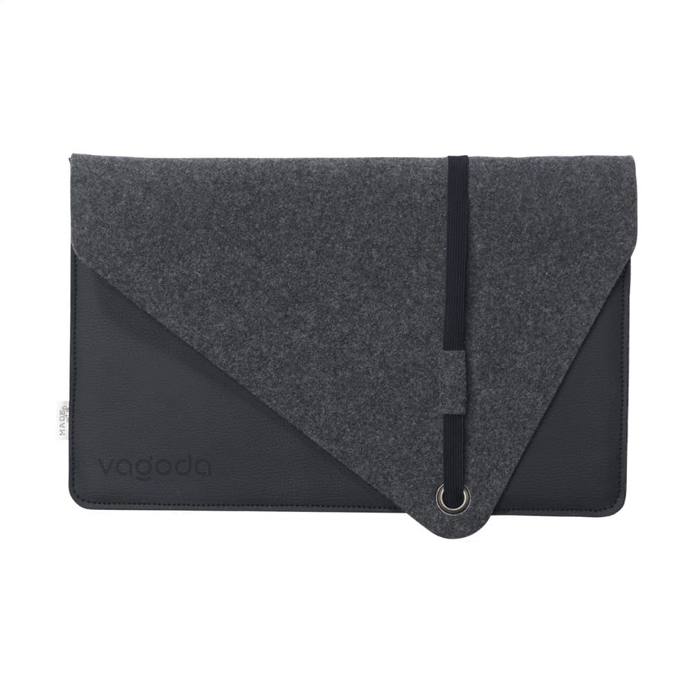 Deze stijlvolle, design 15/6 inch laptop sleeve is gemaakt van een combinatie van vegan leer van appelpulp, een plantaardig alternatief voor leer, en gerecycled wolvilt vervaardigd uit 50% gerecycled wol, 30% polyester en 20% wol. De pulp van appels is de basis voor het maken van vegan appelleer dat er uitziet en voelt als leer. Een duurzaam en stijlvol product van MADE out of voor het veilig opbergen en vervoeren van een laptop. Deze laptophoes heeft een fraaie sluitelastiek van 100% GOTS gecertificeerd katoen en natuurlijk rubber dat biologisch afbreekbaar is. Het extra opbergvak heeft genoeg ruimte voor het opbergen van bijvoorbeeld een oplader en documenten. Voorzien van het Global Recycled Standard keurmerk. Handgemaakt. Dutch design. Made in Holland. Met het vakkundige hergebruik van materialen wordt dit materiaal een nieuw leven ingeblazen en tegelijk worden de principes van de kringloopeconomie nageleefd. Door het ragageproces worden kledingstukken gereduceerd tot gerecyclede vezels, gescheiden naar kleur en soort. Aan het einde van het productieproces ziet de tuft er hetzelfde uit als fris geschoren wol. Het materiaal wordt geproduceerd in Italië. Impact – 1 kilo vilt bespaart: 541 liter water 54,50 KG CO2 92 kWh Dit staat gelijk aan 4,5 keer een bad vullen en 150 keer je laptop opladen. Extra info inzake levertijd: 1 - 50 stuks: 2 weken, 50 - 250 stuks: 3 weken, 250 - 500 stuks: 4 weken, 500 - 1.000 stuks: 5 weken. Vanaf 1.000 stuks prijs en levertijd op aanvraag. Per stuk in kraft doos.