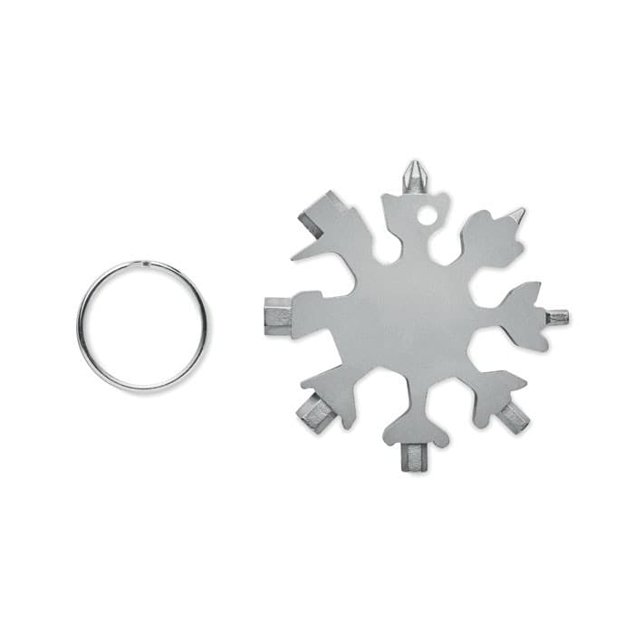 Multifunctionele 17-in-1 roestvrijstalen sneeuwvlokvorm. Inclusief metalen bevestigingsring.
