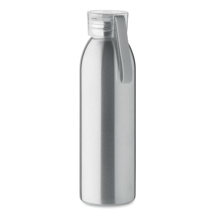 Enkelwandige roestvrijstalen thermosfles met PP deksel en siliconen hanger. Inhoud: 650 ml.