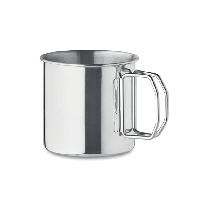 Enkelwandige mok van roestvrij staal met inklapbaar handvat. Inhoud: 330 ml.