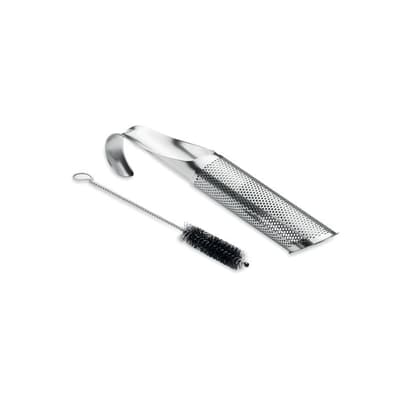 Herbruikbare roestvrijstalen thee-infuser set in katoenen zakje. Inclusief theefilter met compacte en gebogen haak zodat hij over de rand van de kop of mok kan hangen en reinigingsborstel.