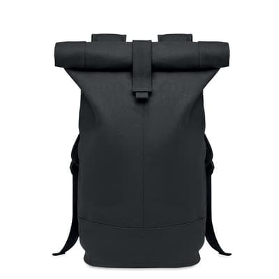 Rolltop rugzak van hoge kwaliteit 340 gr/m² gewassen canvas met gewatteerde rugversterking . De voering is gemaakt van 210D RPET.