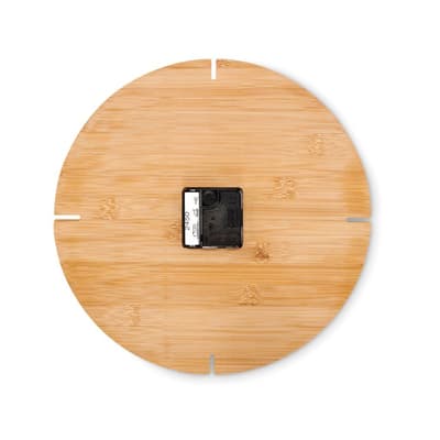 Bamboe wandklok met tik-tak systeem. 1 AA-batterij nodig, niet inbegrepen. Bamboe is een natuurlijk product, de kleur per artikel kan verschillen. Perfect voor klokken bedrukken.