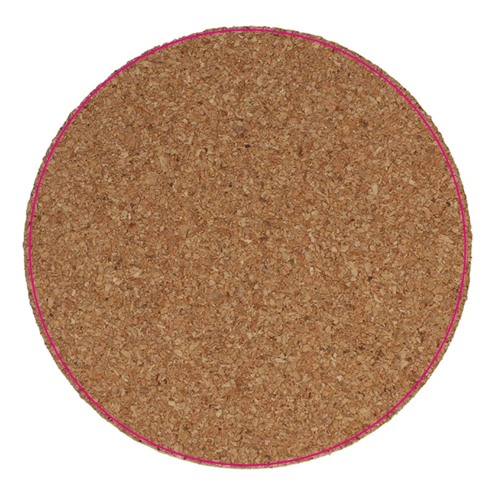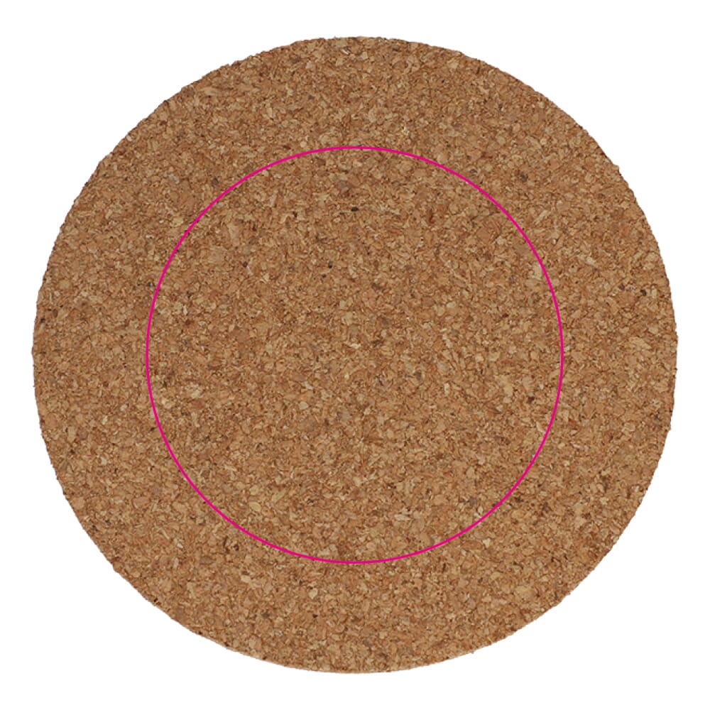 Ronde onderzetter gemaakt van het natuurlijke, duurzame materiaal kurk. Door de poreusheid van het materiaal zullen de drukresultaten variëren.