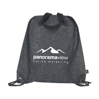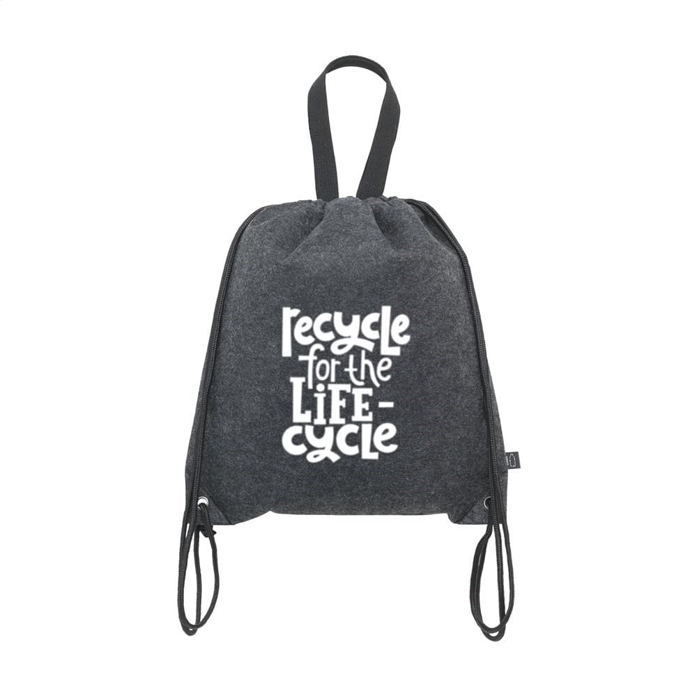 WoW! Milieuvriendelijke rugzak van RPET vilt (gemaakt van gerecyclede PET-flessen en gerecycled textiel). Met aanrijgkoorden en handige draaglussen. Inhoud ca. 11,5 liter.