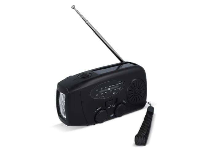 De SafeSound Noodradio is een compacte, draagbare alleskunner: radio, zaklamp en powerbank in één. Opladen kan via zonne-energie, opwinden of met de meegeleverde USB-C kabel. Luister naar AM- en FM-zenders, laad je telefoon op met 1800 mAh vermogen of gebruik de zaklamp. Met een batterijduur van 15 uur is dit de ideale metgezel in noodsituaties of onderweg.