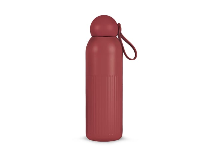 De Sagaform Tekla fles staat voor Scandinavisch design en dagelijks gebruik. Gemaakt van gerecycled staal met vacuümisolatie en kopercoating: houdt dranken 12 uur warm of 24 uur koud zonder condensatie. Verticale strepen, een afgeronde dop van gerecycled plastic en een afneembaar rietje kenmerken het functionele design. Vaatwasserbestendig.