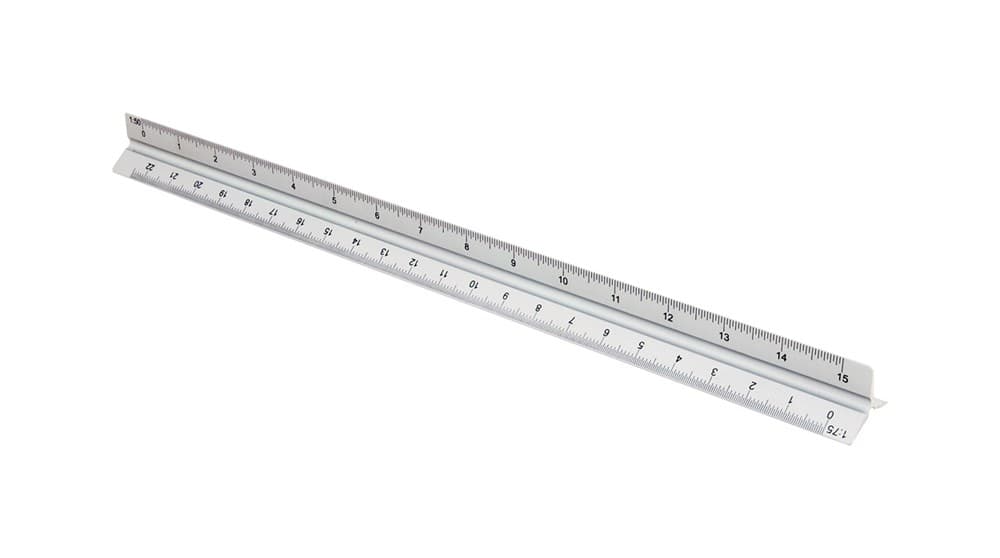 Aluminium scalimeter liniaal in driehoekige vorm. Met liniaal van 30 cm en schaal 1: 20/1: 25/1: 50/1: 75/1: 10.