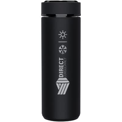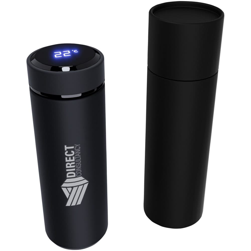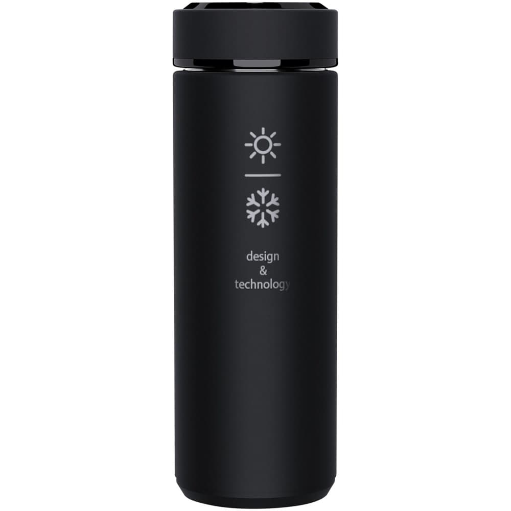 500 ml dubbelwandig geïsoleerde RVS fles met antibacteriële behandeling. De fles is uitgerust met een temperatuursensor. Door het "Touch & Light"-systeem wordt de temperatuur van uw drank weergegeven op de flessendop (in Celsius). Geschikt voor warme en koude dranken. Geleverd in een cilindervormige geschenkverpakking gemaakt van gerecycled papier. Afmetingen: Ø 47 x 225 mm. Inclusief batterij: CR 2450 (3V). Batterij kan niet worden vervangen. Kan de temperatuur tot 20.000 keer weergeven.