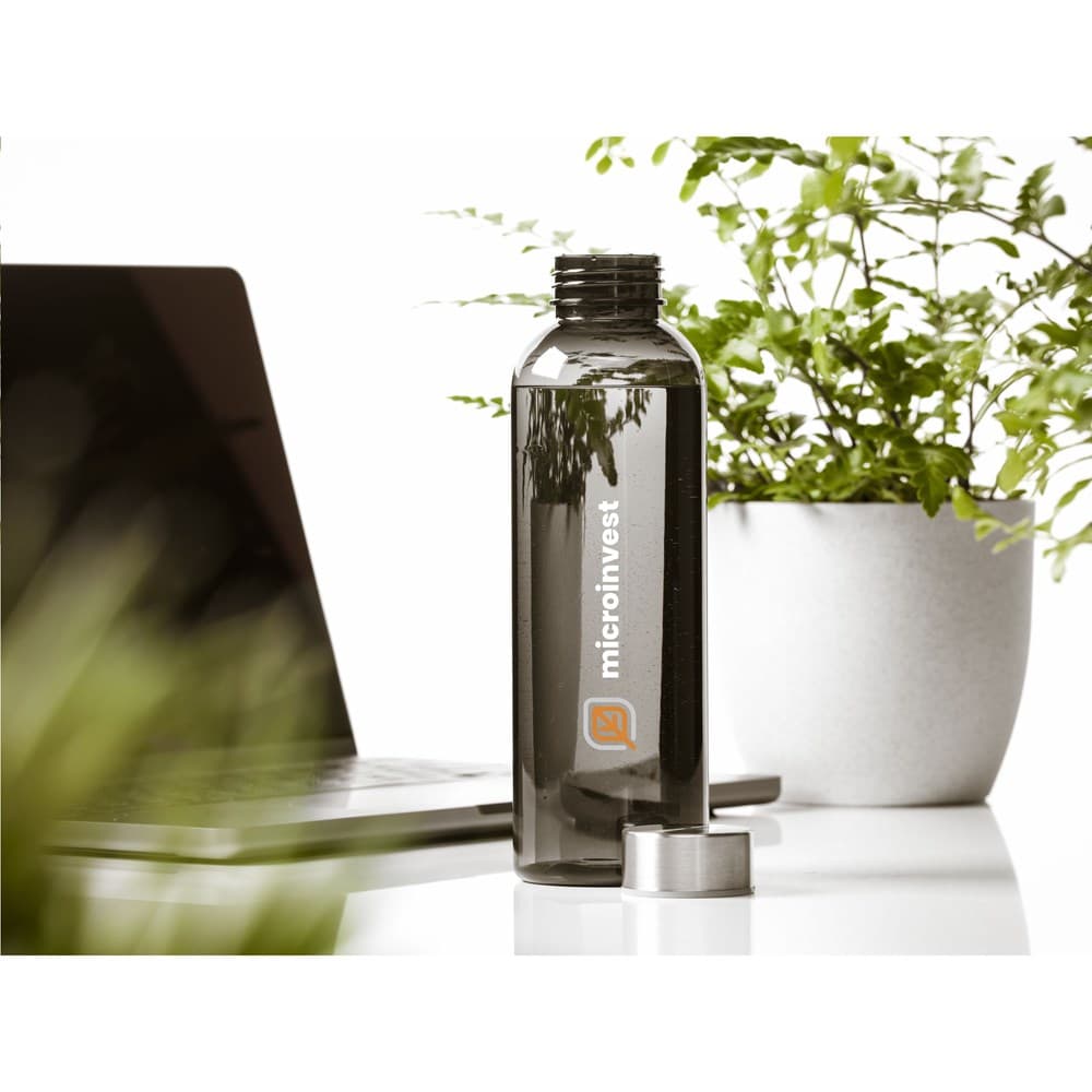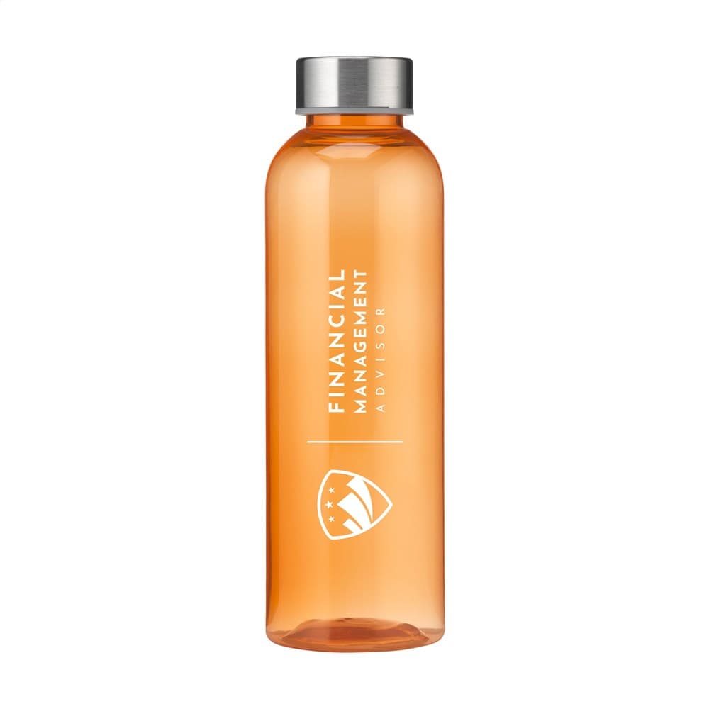 Deze waterfles, ideaal voor wie op zoek is naar drinkflessen bedrukken, is gemaakt van 100% RPET en voorzien van een lekvrije schroefdop van RVS. Het slanke design valt direct op en ligt bijzonder prettig in de hand. De fles is BPA-vrij, heeft een inhoud van 500 ml en is GRS-gecertificeerd met 80% gerecycled materiaal.