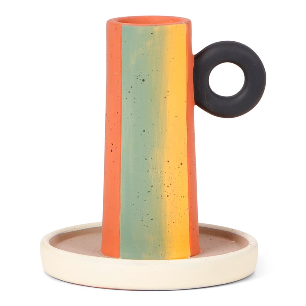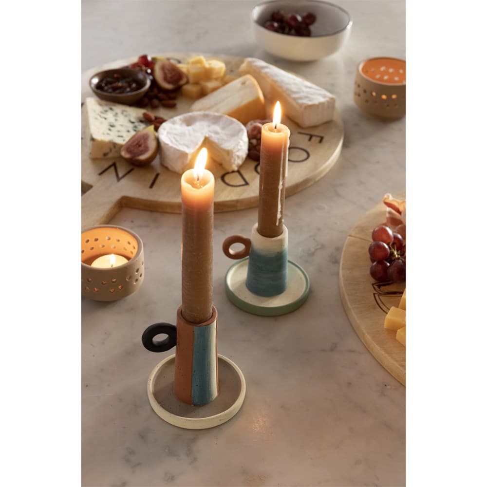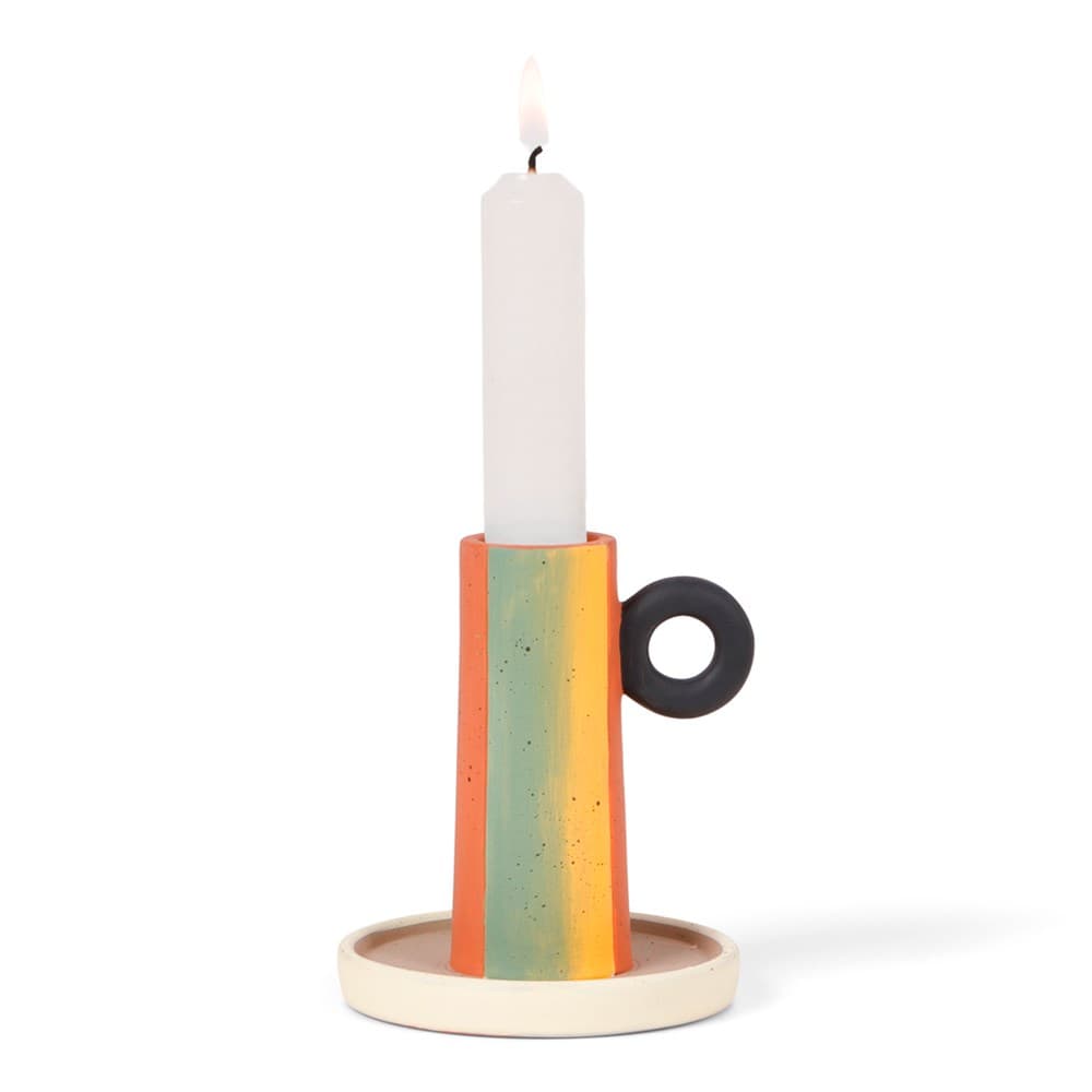 Deze vrolijke kandelaar is perfect te gebruiken om extra sfeer toe te voegen aan de donkere wintermaanden of zwoele zomeravonden. Gebruik hem om de tafelsetting compleet te maken tijdens een borrel avond of zomers diner. De kandelaar is ook verkrijgbaar in een kleinere maat, door deze twee maten te combineren creëer je een speels en sfeervol effect op iedere tafel.