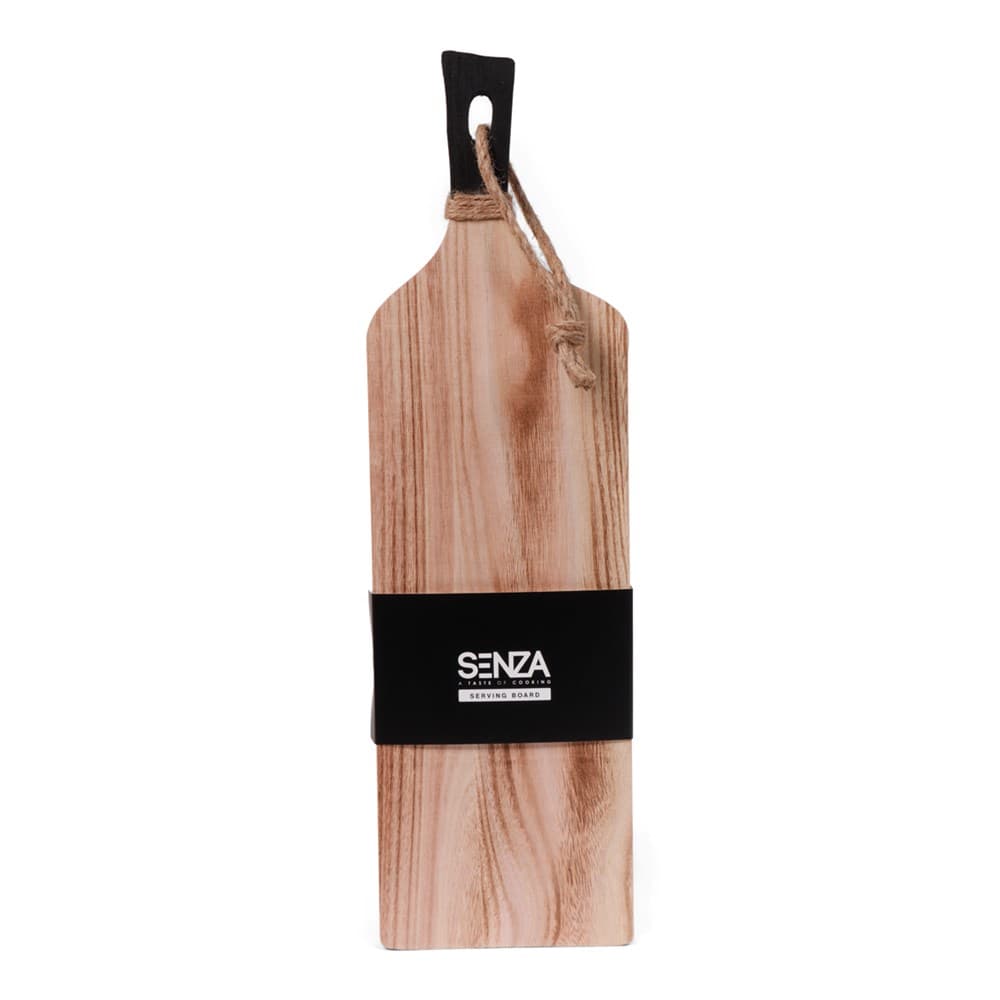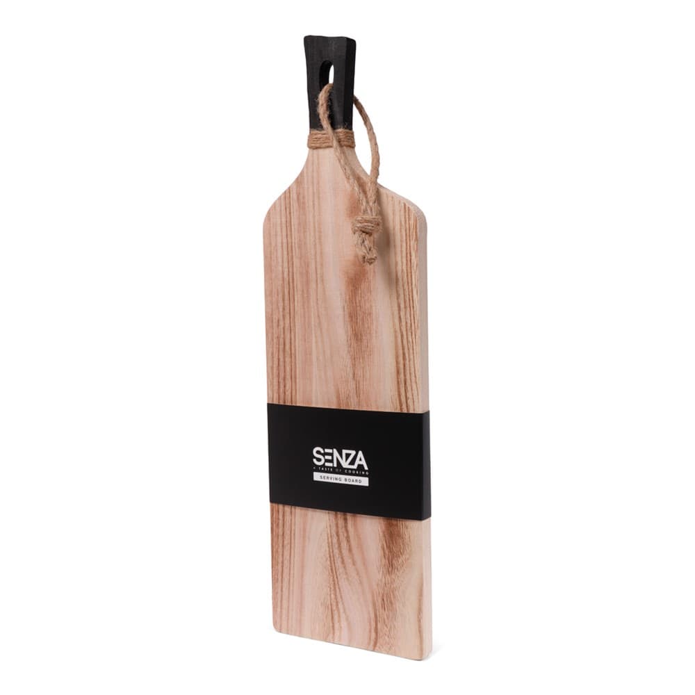 Deze stijlvolle serveerplank is geschikt voor het serveren van de lekkerste hapjes. Dankzij de zwartkleurige handgreep is de plank eenvoudig te tillen. De plank kan gemakkelijk opgehangen worden aan het koord. De plank is gemaakt van Paulownia hout, wat voor een warme look zorgt.