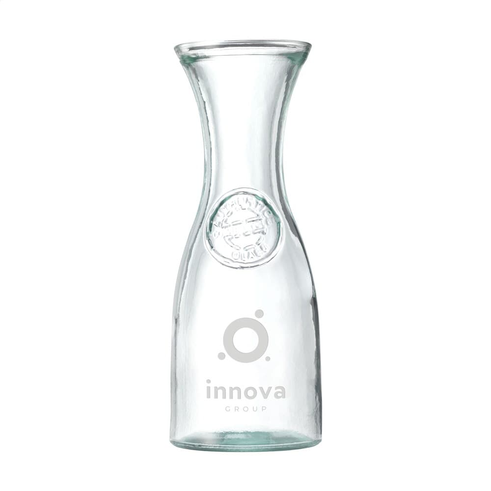 WoW! Decoratieve karaf van 100% gerecycled, stevig kwaliteitsglas. Het glas wordt gekenmerkt door de reliëftekst: 'Authentic Glass 100% recycled'. Een gezellige sfeermaker met karakter. De blauwgroene tint van het glas is een natuurlijke eigenschap van gerecycled glas. De kleur en mogelijke oneffenheden benadrukken de schoonheid van imperfectie en dragen bij aan de authenticiteit van dit product. Recycling vermindert het verbruik van nieuwe grondstoffen, water en energie. Kleur, dikte en formaat kunnen per product verschillen. Made in Spain. Inhoud 800 ml.
