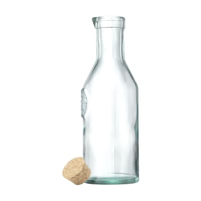 WoW! Decoratieve waterfles met schenktuit van 100% gerecycled, stevig kwaliteitsglas. Afsluitbaar met een kurken dop. Het glas wordt gekenmerkt door de reliëftekst: 'Authentic Glass 100% recycled'. Een gezellige sfeermaker met karakter. De blauwgroene tint van het glas is een natuurlijke eigenschap van gerecycled glas. De kleur en mogelijke oneffenheden benadrukken de schoonheid van imperfectie en dragen bij aan de authenticiteit van dit product. Recycling vermindert het verbruik van nieuwe grondstoffen, water en energie. Kleur, dikte en formaat kunnen per product verschillen. Made in Spain. Inhoud 1.200 ml.