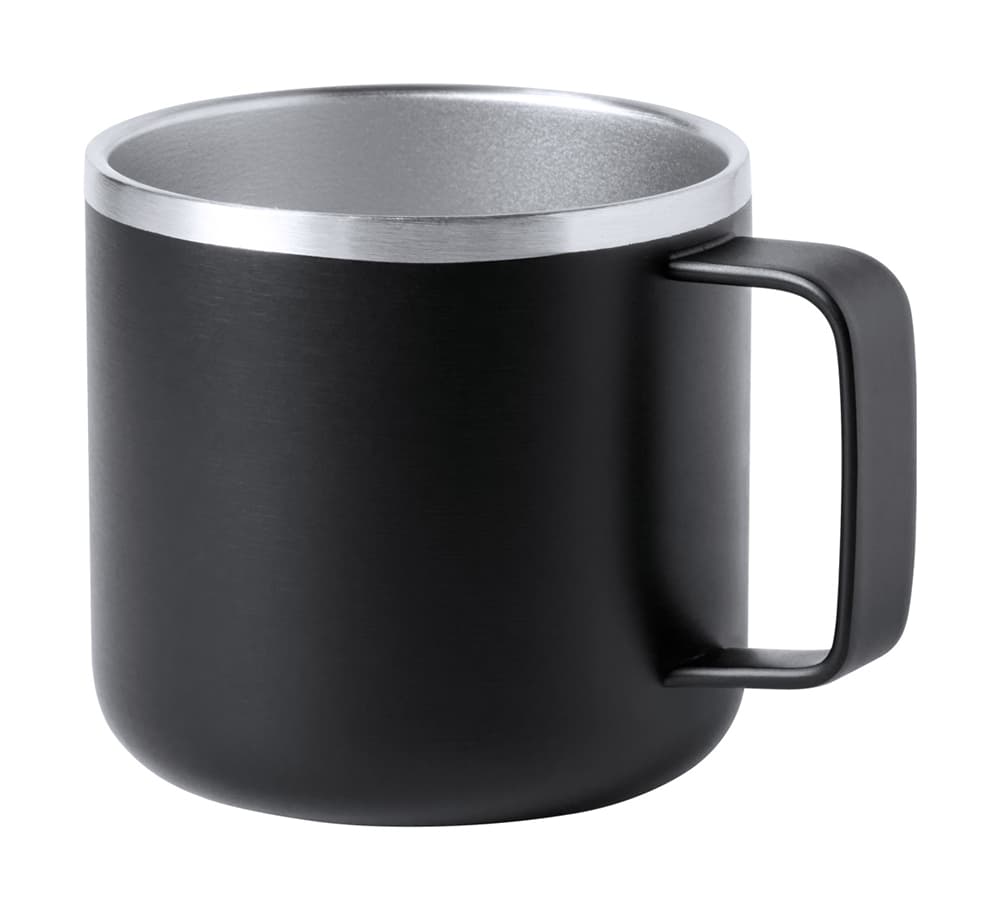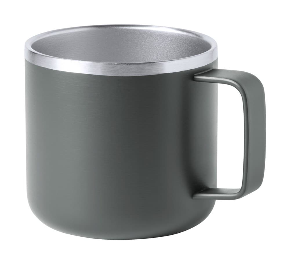 Dubbelwandige, roestvrije stalen mok met gekleurde afwerking, 350 ml.