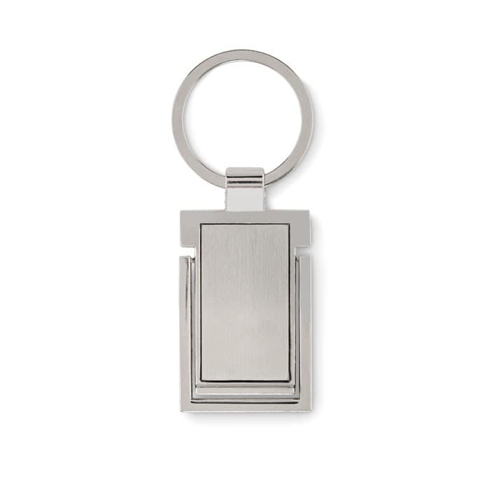 Metalen sleutelhanger met telefoonstandaard. Perfect voor sleutelhangers bedrukken.