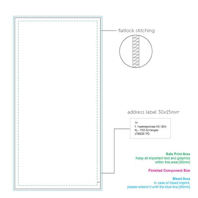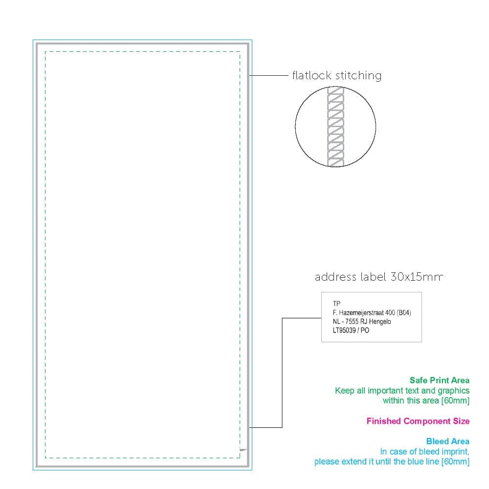 Outdoor handdoek gemaakt van sneldrogend microfiber (200g/m², 1400x700mm). Inclusief een custom-made full-colour print op één zijde. Optioneel kan de andere zijde ook bedrukt worden. Ook de kleur van de zoom is aan te passen.