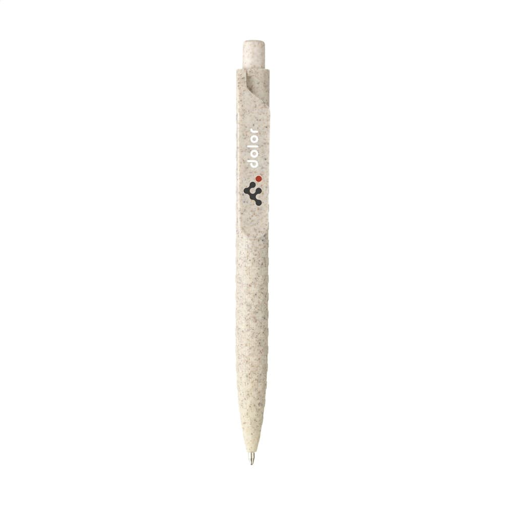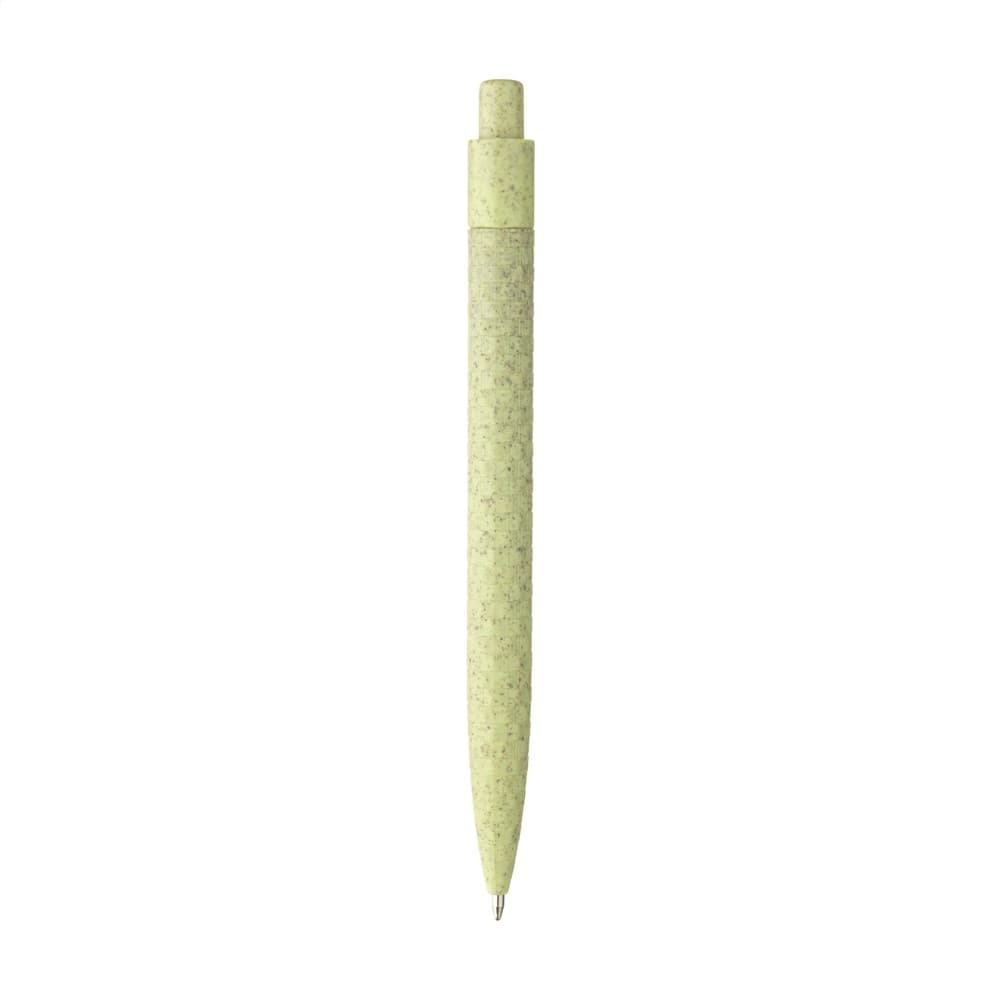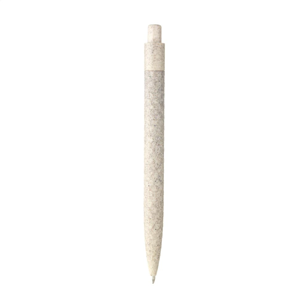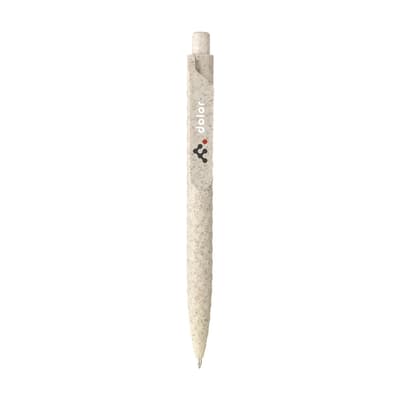 Eco-vriendelijke, blauwschrijvende balpen gemaakt van 60% tarwestro en 40% ABS. De houder, clip en drukknop zijn vervaardigd uit de overgebleven stengels van geoogste tarwe. Dankzij de royale clip is er volop ruimte voor een opvallende opdruk. Deze balpen maakt deel uit van onze eco pennen collectie en is daarmee een duurzame keuze voor iedere promotie.