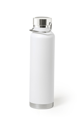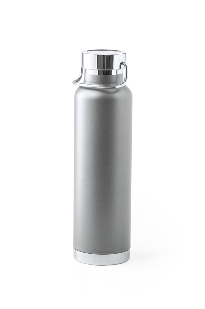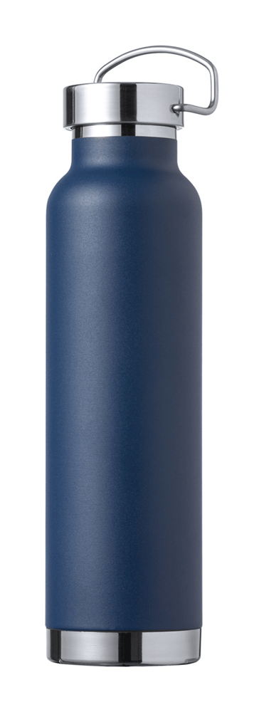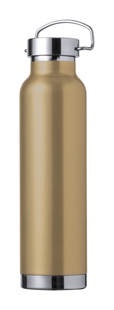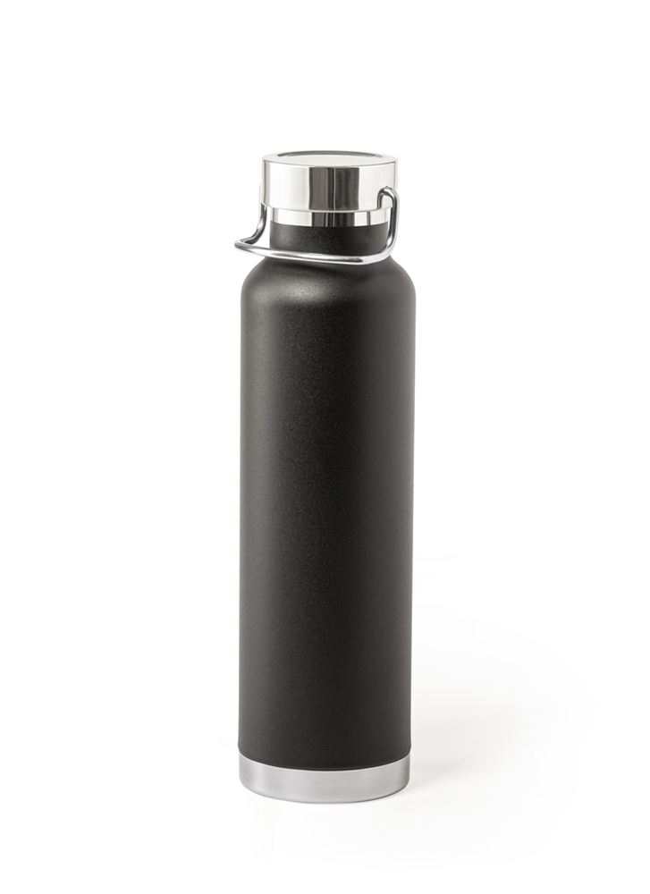 Dubbelwandige roestvrijstalen, koper geïsoleerde vacuümfles met draagdeksel, 650 ml. Koperen isolatie houdt dranken 12 uur warm en 24 uur koud.