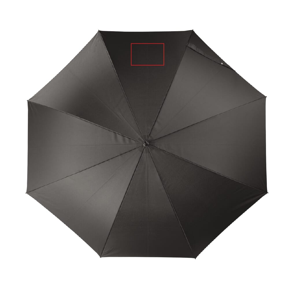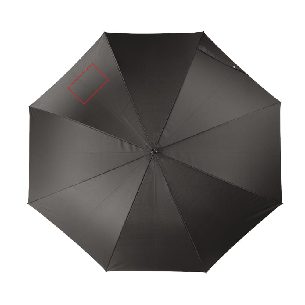 Grote paraplu van Pongee polyester met windproof glasvezel frame. Het gerafineerde kleurenspel tussen doek en het ergonomisch ontworpen handvat, geven deze paraplu een strakke uitstraling.