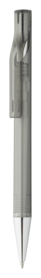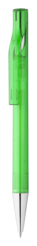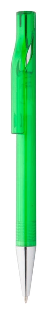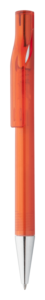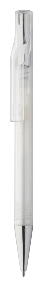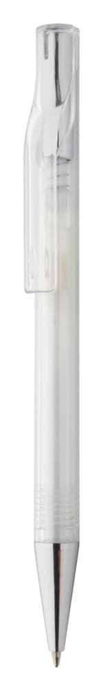 Plastic balpen, transparant gekleurd. Met chromen uiteinde, blauw schrijvend.