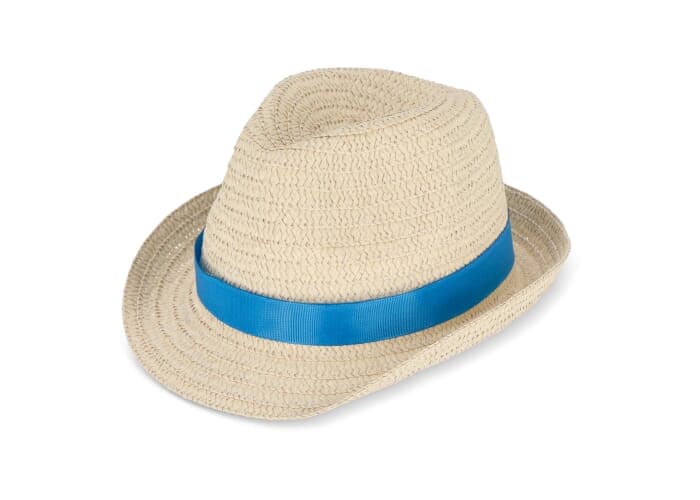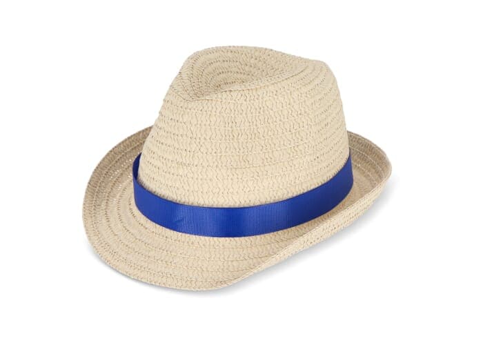 Strohoed met gekleurde band Donkerblauw