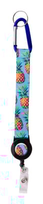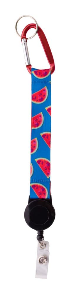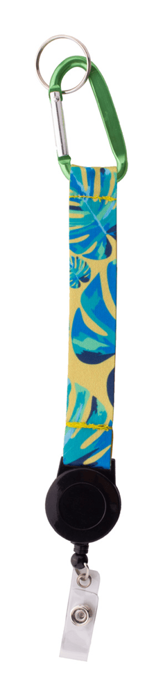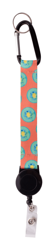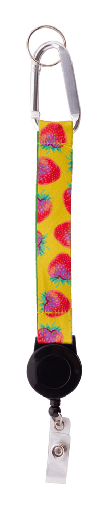 Custom made polyester sleutelhanger met sublimatie bedrukking aan beide zijden. Met telescopische pashouder, aluminium karabijnhaak en metalen sleutelhanger. MOQ: 100 stuks.