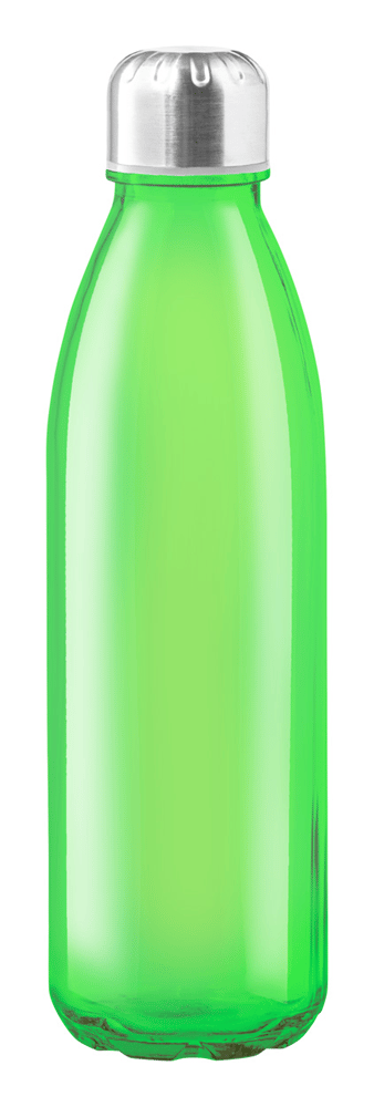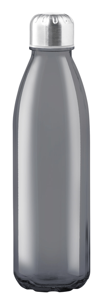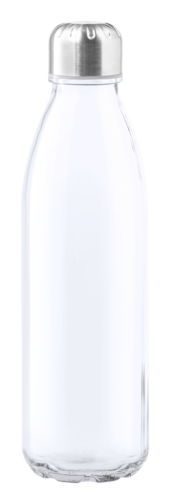 Transparante glazen fles met roestvrijstalen dop, 650 ml. Niet geschikt voor koolzuurhoudende dranken.