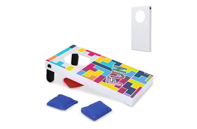 Geniet van plezier en vriendschappelijke competitie met ons tafelspel met werpzakjes. Compact en draagbaar, perfect voor feestjes en bijeenkomsten. Inclusief 4 mini zakjes; gooi ze van een afstand in het gat en word tot winnaar gekroond.