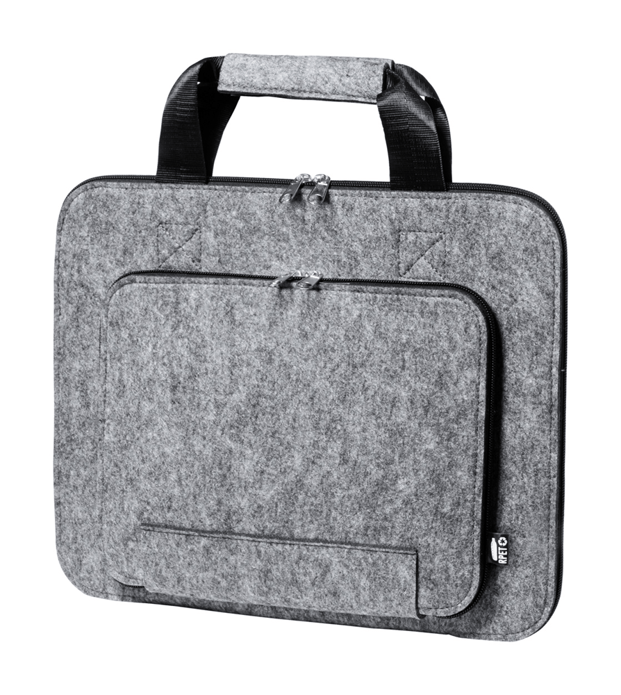 RPET vilten documententas met hoofdvak met ritssluiting en voorvak. Met onderscheidend RPET-label.