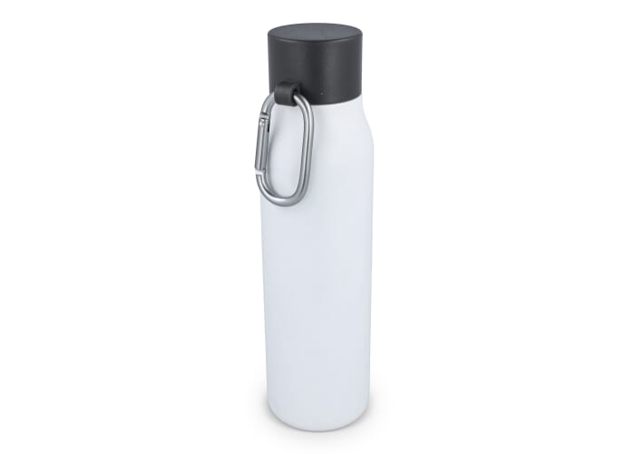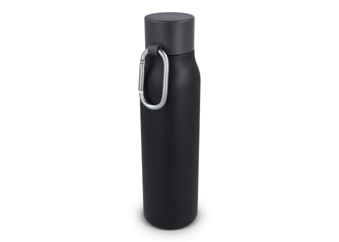 Stevige thermosfles van 600 ml met matte afwerking. De dop heeft een karabijnhaak om hem aan je tas te bevestigen en gemakkelijk mee te nemen. Per stuk verpakt in een giftbox.
