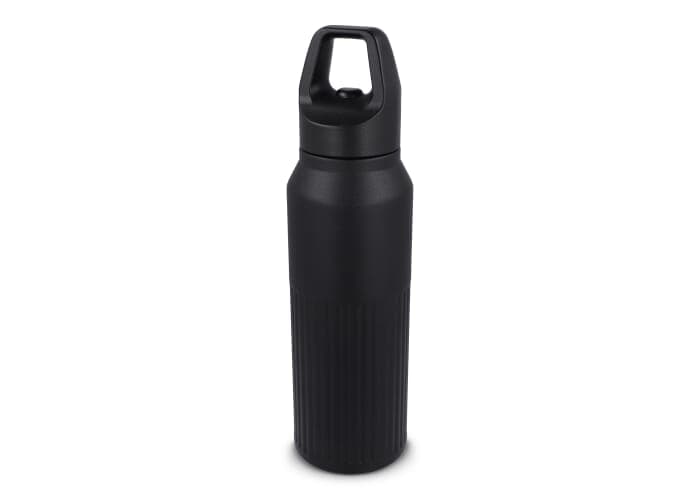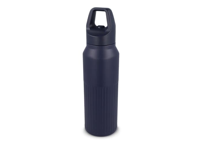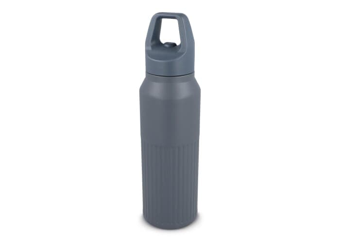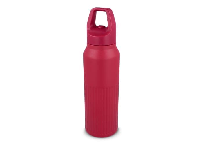 Rubuuste roestvrij stalen thermo fles met een inhoud van 500ml met een Easy-Click dop. De fles is voorzien een modern streep patroon. Warme dranken blijven 8 uur warm en koude dranken 24 uur koud. Per stuk in giftbox verpakt.