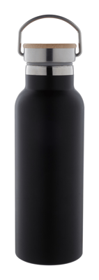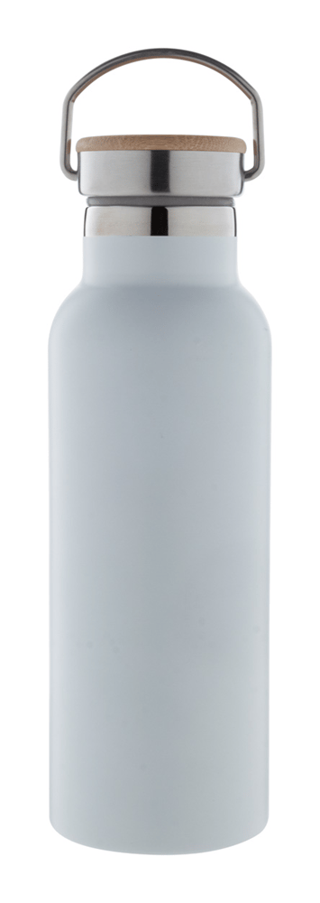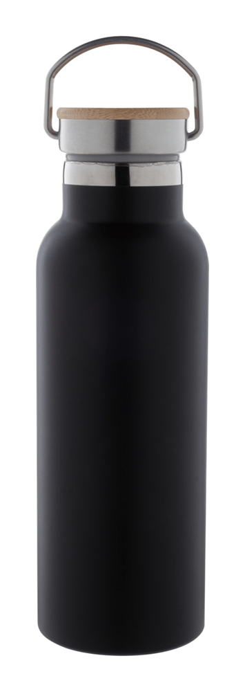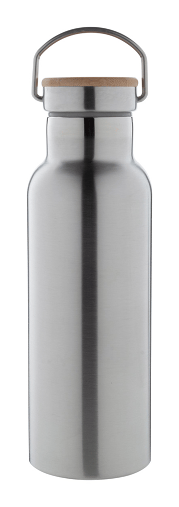 Dubbelwandige roestvrijstalen, vacuümgeïsoleerde fles met bamboe draagdeksel, 500 ml.