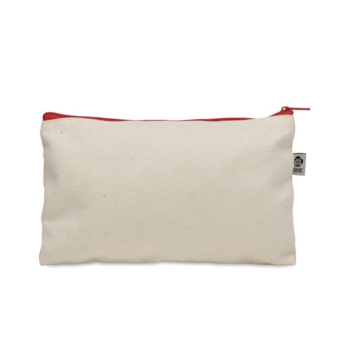 Toilettasje van biologisch katoen met gekleurde rits. 340 gr/m².