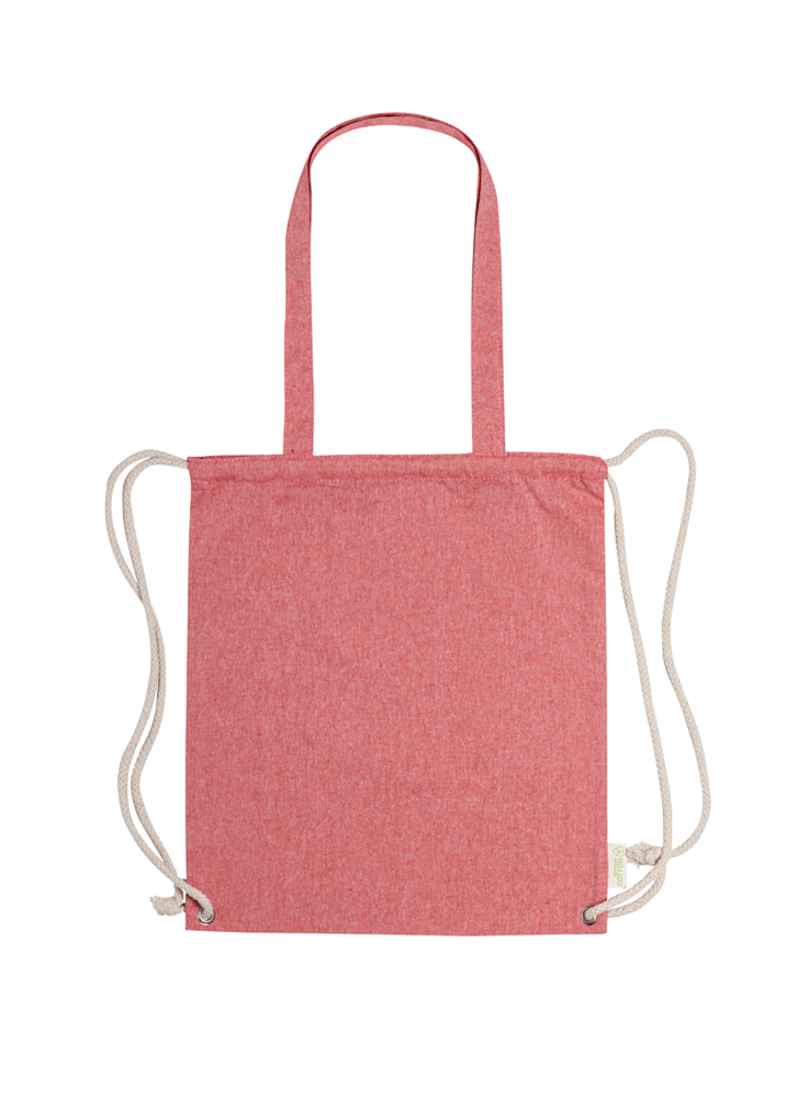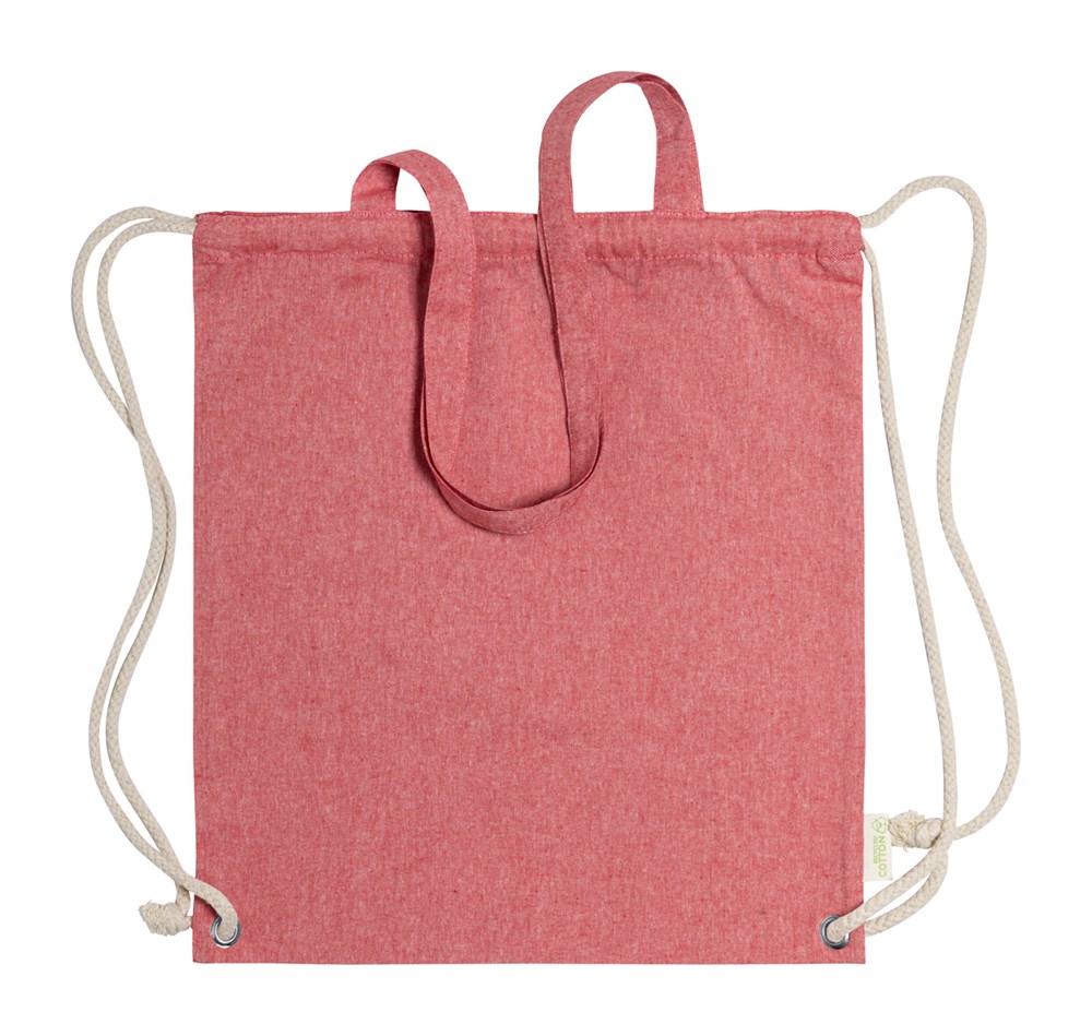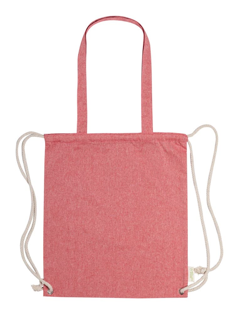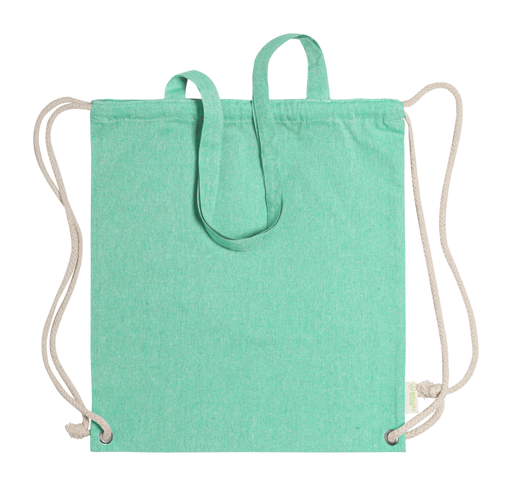 Tas van gerecycled katoen met trekkoord, dikke gevlochten koorden en lange hengsels. Kan ook als boodschappentas worden gebruikt. 100% gerecycled katoen, 140 g / m².