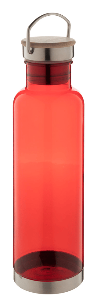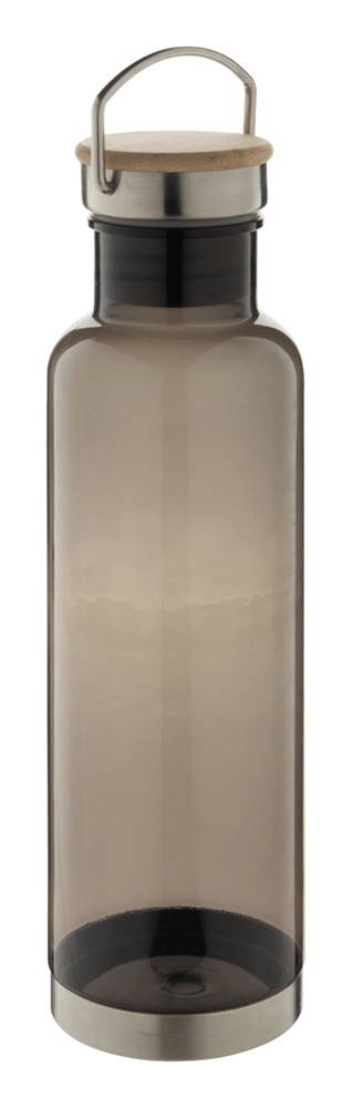 Tritan fles met roestvrijstalen bodem en draagdeksel met bamboe inzetstuk. 800 ml. BPA-vrij. Niet geschikt voor koolzuurhoudende dranken.