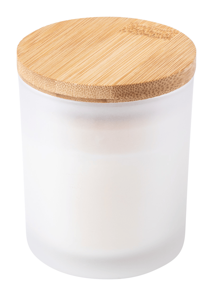 Vanille geurkaars in glazen pot met bamboe deksel. In geschenkverpakking.