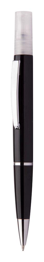 Plastic balpen met blauwe vulling en ontsmettingsspray bovenop. Inhoud: 3 ml. Geleverd zonder ontsmettingsvloeistof.